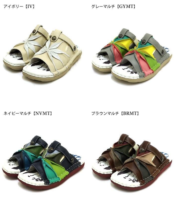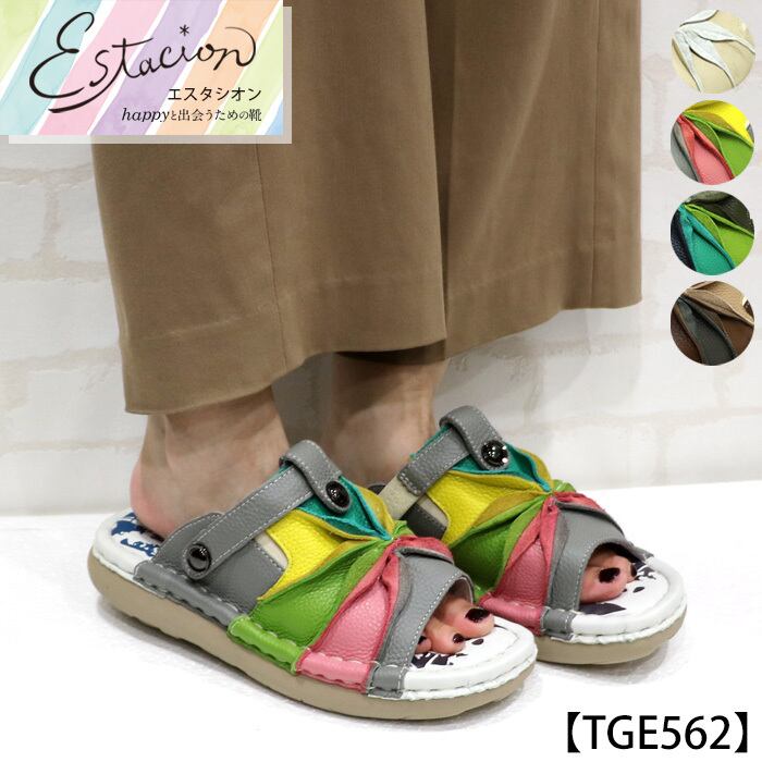 TGE562【レディース/受注生産可】Estacion~エスタシオン~・スターフラワーモチーフ2way本革サンダル【tge562】