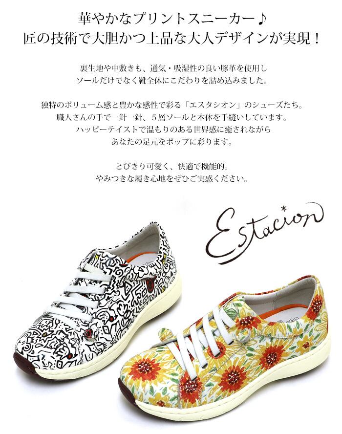 Y820H【レディース】Estacion~エスタシオン~・プリント柄エアサイクル本革スニーカー