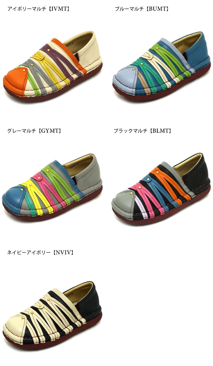 TGE557【レディース/受注生産可】Estacion~エスタシオン~・カラフルライン本革スリッポンシューズ