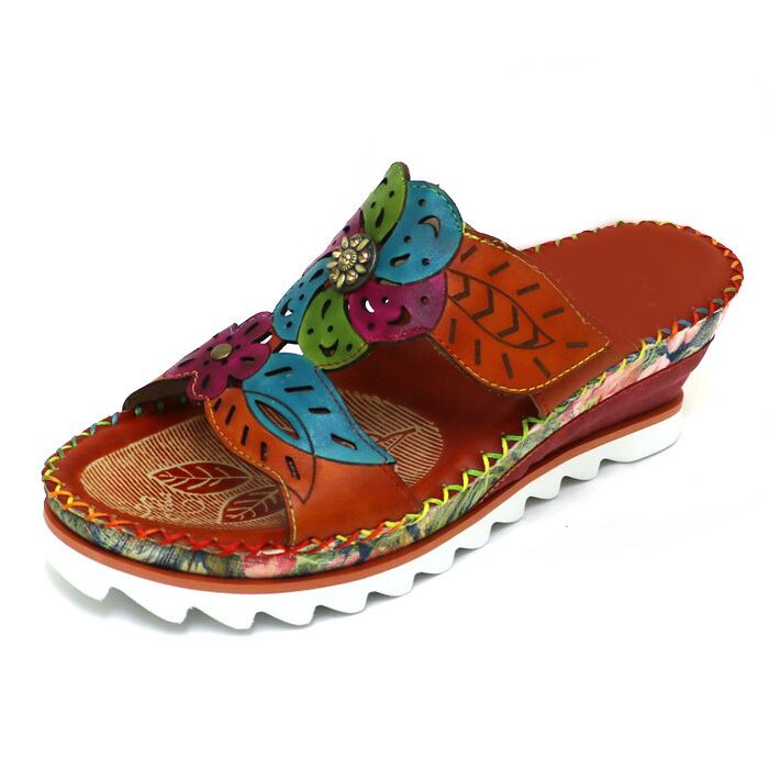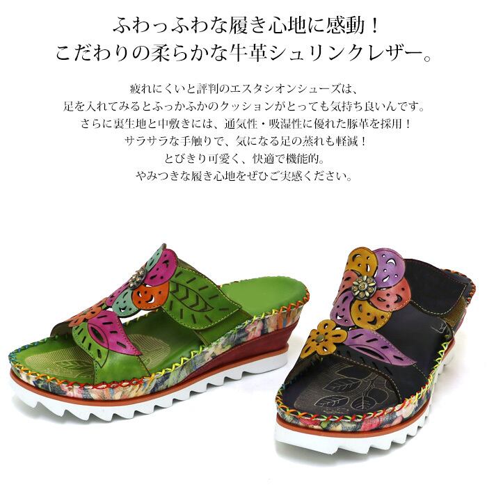 サンダル.ミュール.エスタシオン.靴.レディース.estacion.本革.ブランド.軽量.歩きやすい.フラワー.お花.エスニック調.レザー.厚底.ローヒール.新作.S.M.L.LL.22.5cm.23.0cm.23.5cm.24.0cm.24.5cm
