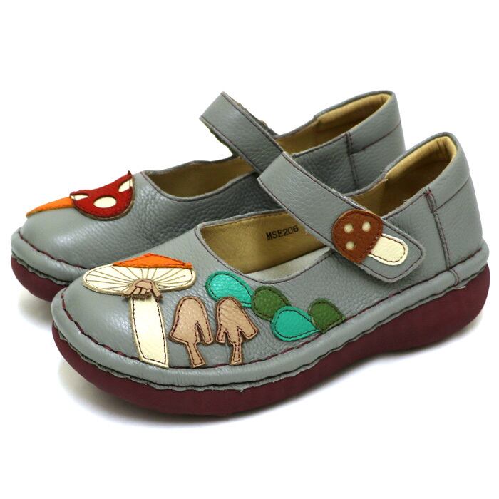 MSE206【レディース】Estacion~エスタシオン~・きのこモチーフ本革ストラップパンプス