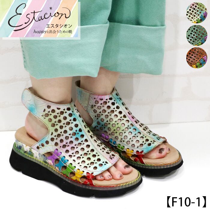 サンダル.エスタシオン.靴.レディース.estacion.本革.ブランド.軽量.歩きやすい.フラワー.お花.エスニック調.レザー.厚底.ローヒール.新作.S.M.L.LL.22.5cm.23.0cm.23.5cm.24.0cm.24.5cm