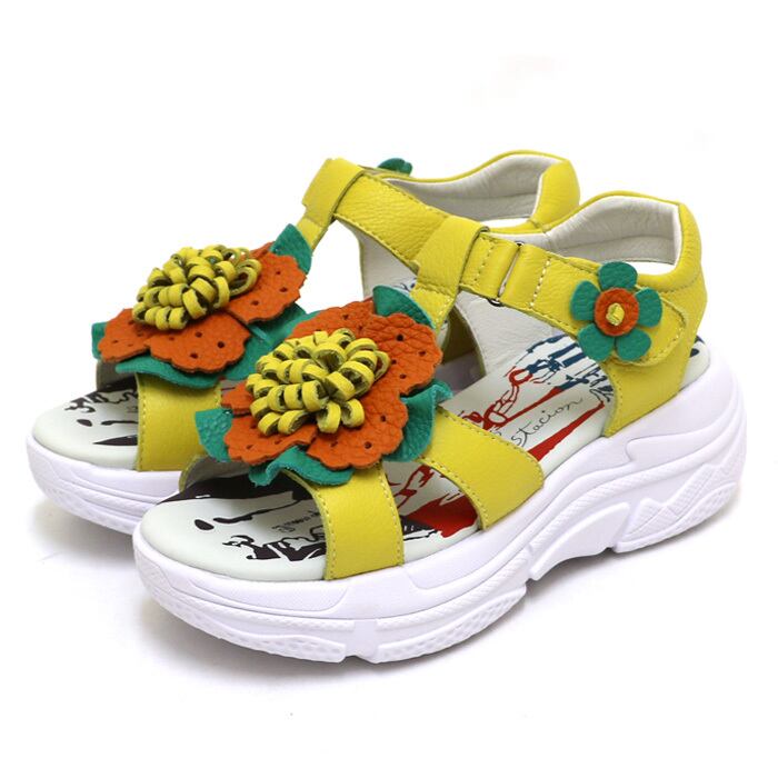 XZ1912【レディース】Estacion~エスタシオン~・フラワーチーフ本革スニーカーソールサンダル