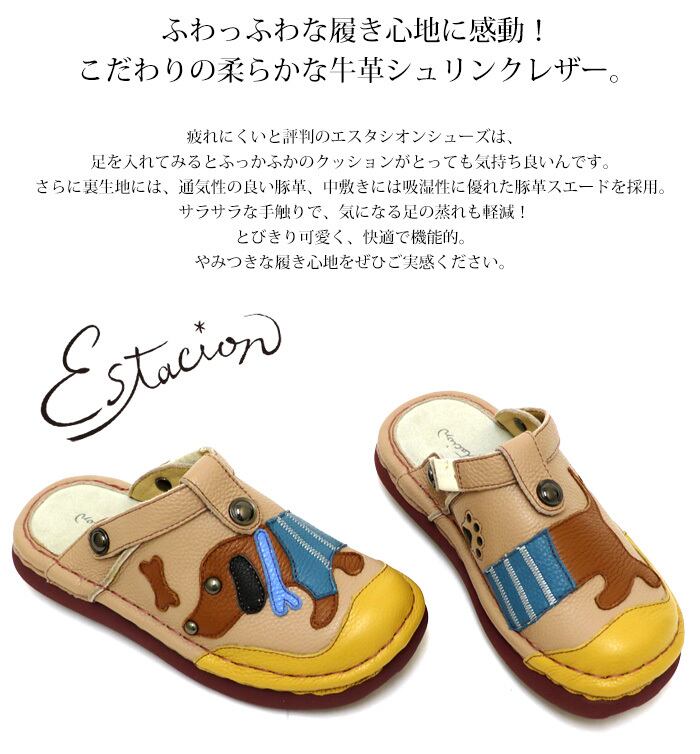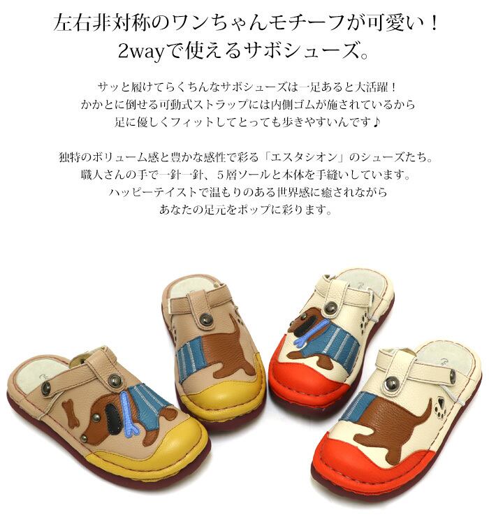 TGE599【レディース/受注生産可】Estacion~エスタシオン~・ワンちゃんモチーフ2way本革サボシューズ
