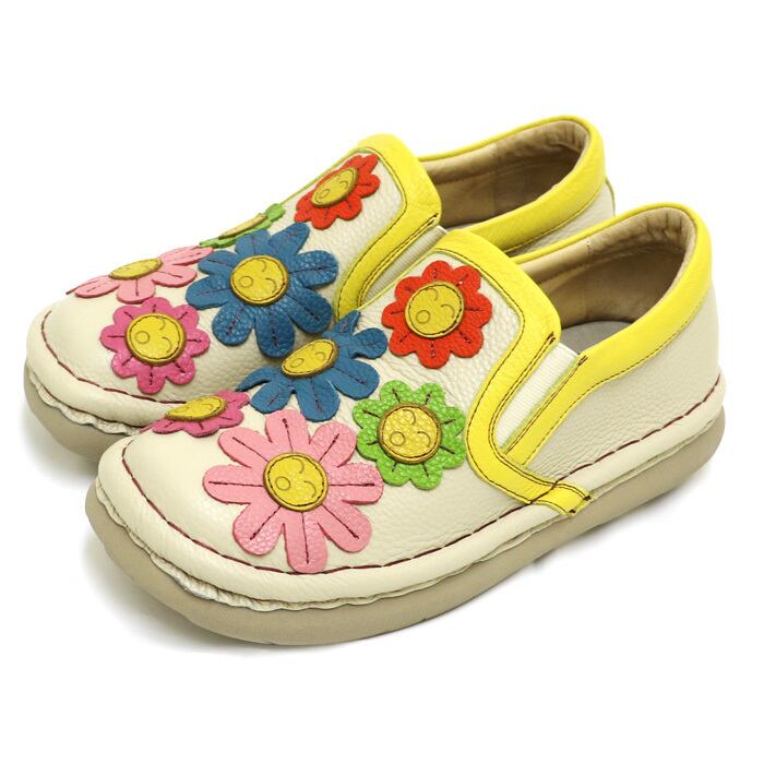TGE611【レディース/受注生産可】Estacion~エスタシオン~・フラワーニコちゃんモチーフ本革スリッポンシューズ
